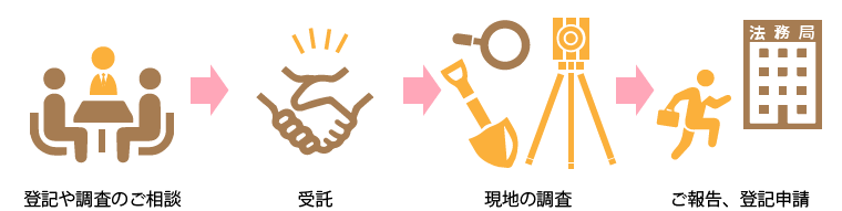 まだ登記されていない土地の地目や広さを調査し登記申請を行います。