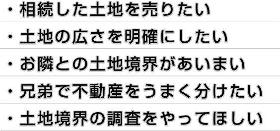 このようなことでお悩みでしたら、お気軽にご相談ください。新日本土地家屋調査士法人は地場に根付いた信頼と、経験をいかして多数のお客様にご対応してきました。